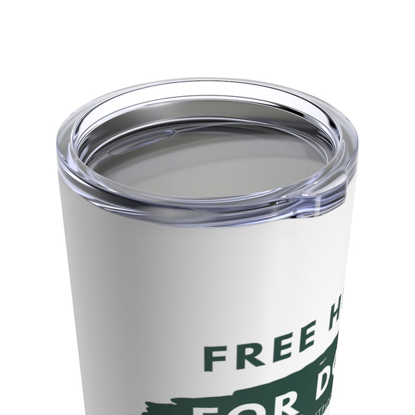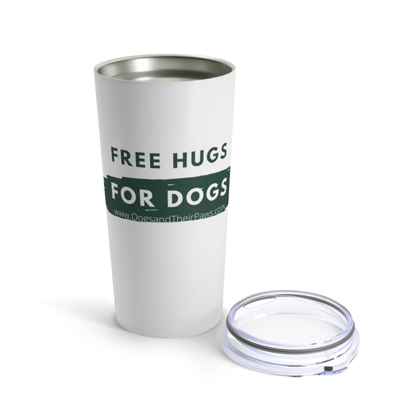 This green and white "Free Hugs for Dogs" Insulated 20 oz Tumbler is perfect for drinking coffee, tea, hot chocolate or other steaming beverage. You can enjoy it at home, commuting or on your daily walks and visits to the dog park. Your football and dog friends will appreciate the sentiment as they collect their free hugs.
